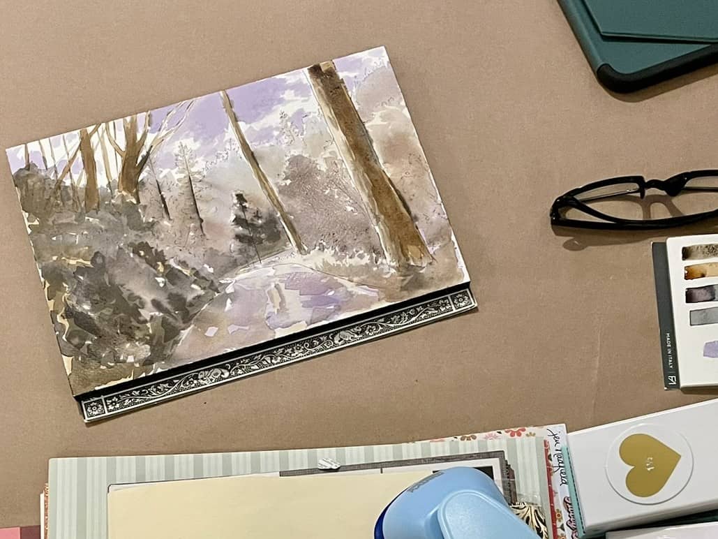 This watercolor and pen class invites students to create a serene winter scene featuring aspen trees while learning loose watercolor washes, simple pen work, and techniques for building depth, contrast, and texture. We’ll explore winter color palettes, layering, negative space, and approachable mixed-media techniques. All levels are welcome. All materials are provided for use in class.