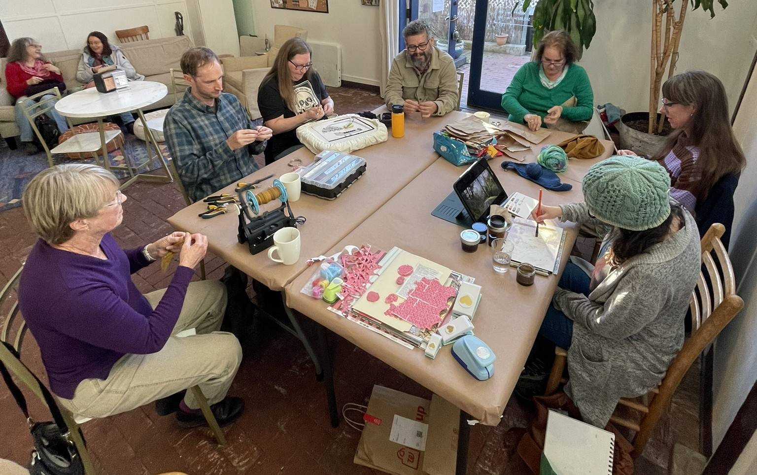 Focused participants at Thursday's first Community Craft Club! Join us Thursdays, 4-6pm.