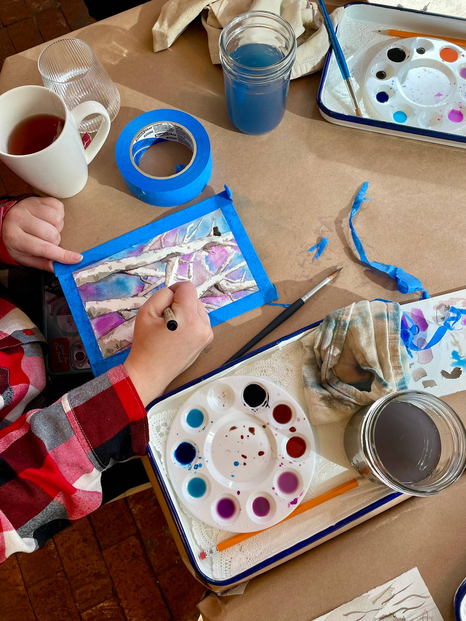 We got quite a bit of snow last week but were happy to open back up for Saturday's watercolor class with Nicole. We painted a winter tree scene, which felt just right for the weather!